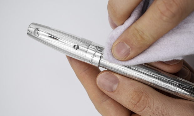 A soft cloth is usually all that is needed to clean pens with hard-metal finishes like platinum, palladium, stainless steel or chrome. Soft cloths are also recommended for pens made of celluloid, enamel or resin. For sensitive finishes like these, it is very important to avoid use of all chemicals or abrasives.