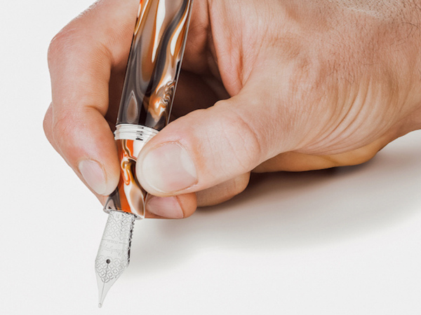 Many believe that the best position for a fountain pen between the fingers is one where it rests near the end of the middle finger, on the lower knuckle: naturally, if this grip is not comfortable for your writing style, it is possible to move the end of the pen towards the V-shape created by the meeting of the thumb and the other fingers of the hand.