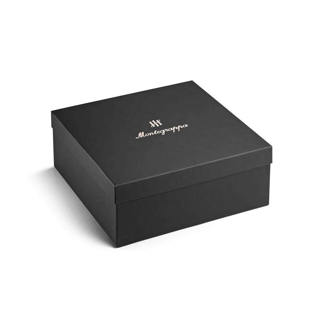 At its center, the Montegrappa Ambigram serves as both compass and signature, while the whipstitch seams and structured weave express the quiet strength of refined design.