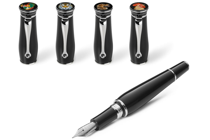 A model of fountain pen with a sinuous shape, rounded specifically for easy handling. Thus, the embrace between hand and pen becomes natural, an inseparable duo that moves delicately on the paper. Depending on preferences, the Amphora Bespoke Montegrappa pen is crafted in the atelier with a unique decoration on the top of the cap: a design tailor-made through hand painting or the burin engraving technique.