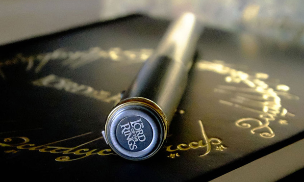 Fountain pens use an all-black, stainless-steel nib, fed by a cartridge-converter filling system. Each pen is presented in a gold-foil collector’s box wrapped in a well-travelled map of Middle-earth.