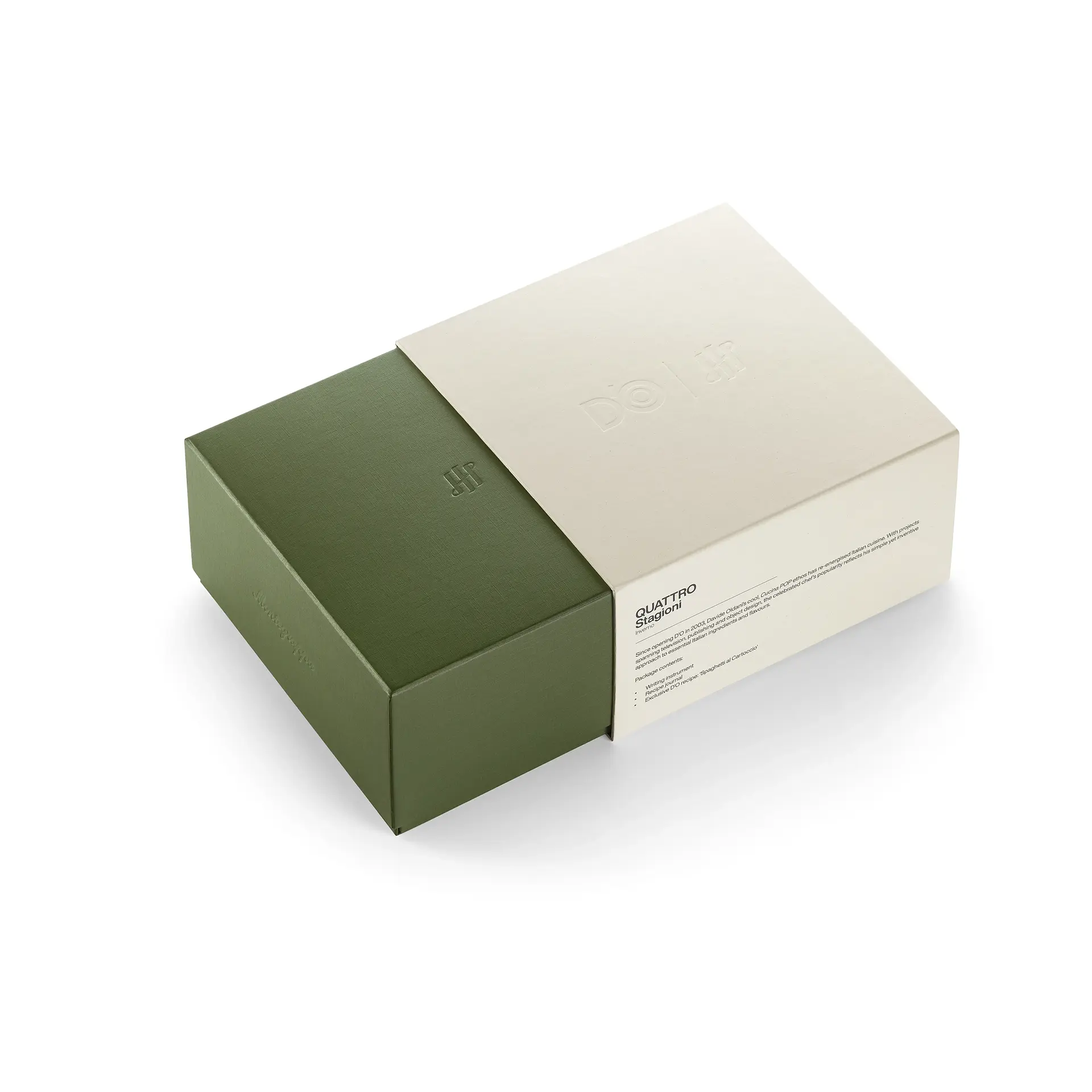 With a secret Davide Oldani recipe slipped into each seasonal edition, a recycled recipe journal provides a place to keep notes on your own favourite dishes. Buon appetito!