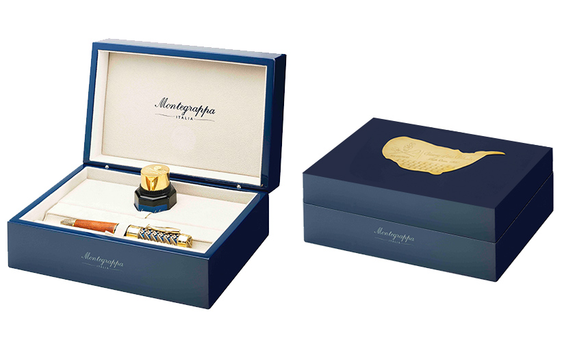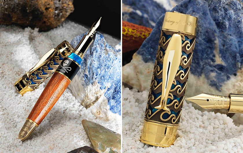 The handcrafted mahogany wood barrel references the whaling ship's hull, with details on the end cap evoking the lifeboats that saved its crew. The bicentenary of the sinking is reflected in limited editions of two hundred fountain pens and rollerballs, each moored in a luxurious blue lacquered box.